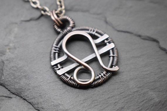 Leo Libra Necklace Wire Wrapped Oxidised Copper Combined Etsy Uk